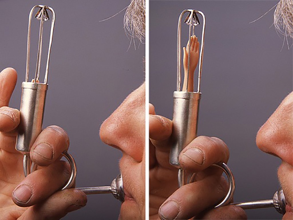 Most recently I have been interested in kinetic art especially kinetic jewelry. My work suggests sculpture that is ostensibly meant to be worn. Using found objects, doll parts and metal I make small scale pieces that are intended to comment on body adornment and ornamentation, both functional and otherwise. I’ve noticed that cell phones, and personal electronic equipment have become so commonplace that they are taking on the mantle of jewelry; jewelry that has a function and perceived necessity. My work questions this norm by functioning in a way that is both absurd and completely unnecessary.
