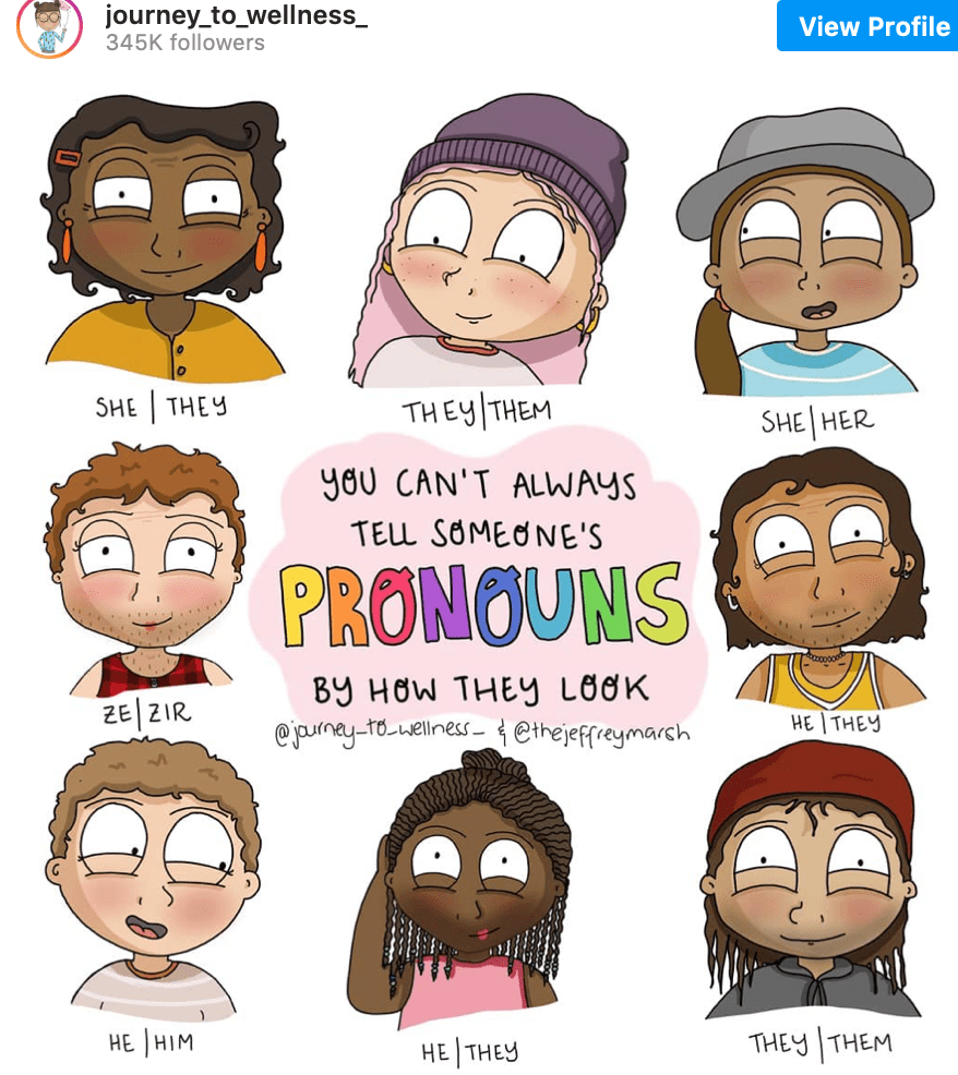 Now that I’m back in the classroom and interacting with young people on a regular basis my focus on pronouns is not just important in my writing but also face to face. I was happy to find this quick guide to pronouns recently published online by Upworthy called Why pronouns are important, how to get them right, and what to do if you slip up. Most of what Hannah shared with me five years ago is explained in this piece and spelled out more comprehensively. I notice the use of pronouns today in almost every corner of my world; email signatures, on zoom, in articles, research and books. I remember asking Hannah if she thought this was a fad and would it go away. The answer was no and now I agree. If you’re not comfortable with pronouns and are wondering where to start this guide may be useful. Most importantly, at the heart of using pronouns is being respectful and kind to students, colleagues, families in your professional and personal lives. I’m sure you’ll agree – that’s a good thing!