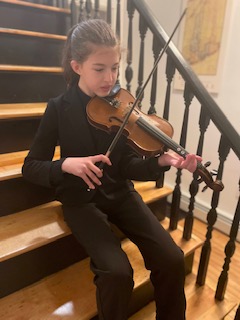 The arts rotate through the schedule for students at Waterville Jr. High and as a 7th grader she doesn’t have visual art but she does have music. She selected the violin which she played when she was younger and is happy to return to it. She enjoys playing in the school orchestra and likes the performances.