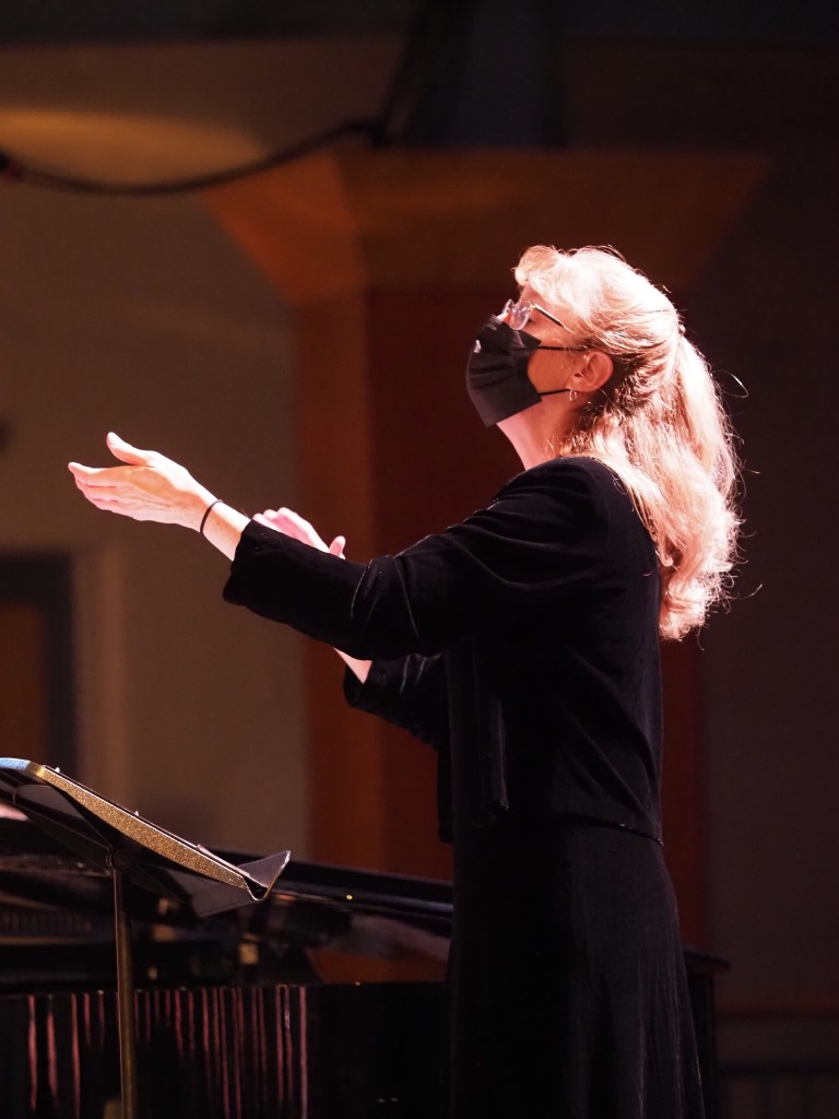I love helping students find their voices. Find their self-confidence through singing. I love it when someone has a solo – and other people never realized what a beautiful voice that person has. And then there is just the self-confidence in getting up and singing before a large crowd – whether in a small group or a large group. There are life lessons – the teamwork is necessary.