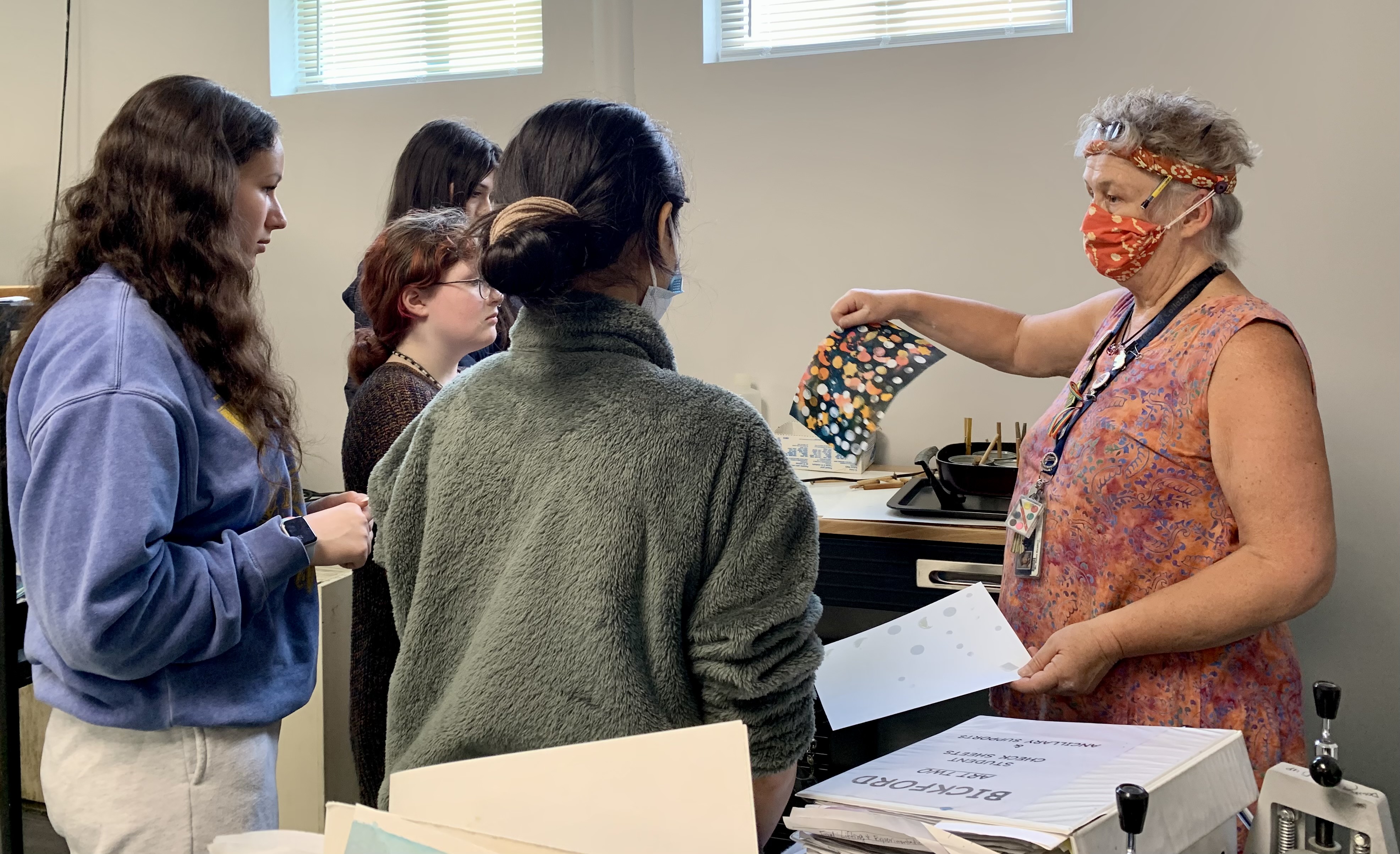 Her early experiences as a student have influenced her teaching and her life. She learned at a young age that she loved learning but didn’t care for school. When she arrived at Maine College of Art & Design – then called Maine College of Art (MECA), she fell in love with being in a space where people were hungry for learning about the same thing. She earned a Bachelor of Fine Arts from MECA and went on to the University of Southern Maine where she received a Bachelor of Science degree in Art Education. During her formal learning she was engaged in pre-service teaching at Waynflete School in Portland and student taught at Gorham Schools and Thornton Academy in Saco.