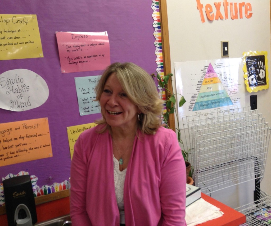 Deb’s program has evolved over the years. She’s grateful for the educators she has worked closely with who have influenced the evolution. Her classes are often mixed groups with AP, Art 1, and advanced students in one space. And, Art 3, 4, AP and Studio Art the same. Juniors and seniors enrolled in Studio Art have their own studio spaces within the art room. Her colleague Matt Johnson teaches in an adjoining classroom. Students migrate between Matt’s and Deb’s classes, moving where learning needs can be met. Deb and Matt’s collegial relationship promote a common studio space that encourages a cross pollination between students. Flexibility has been critical in leading to student success. The teachers move to meet the needs of the kids, not visa versa. A great example of ‘student-centered’ learning environment.