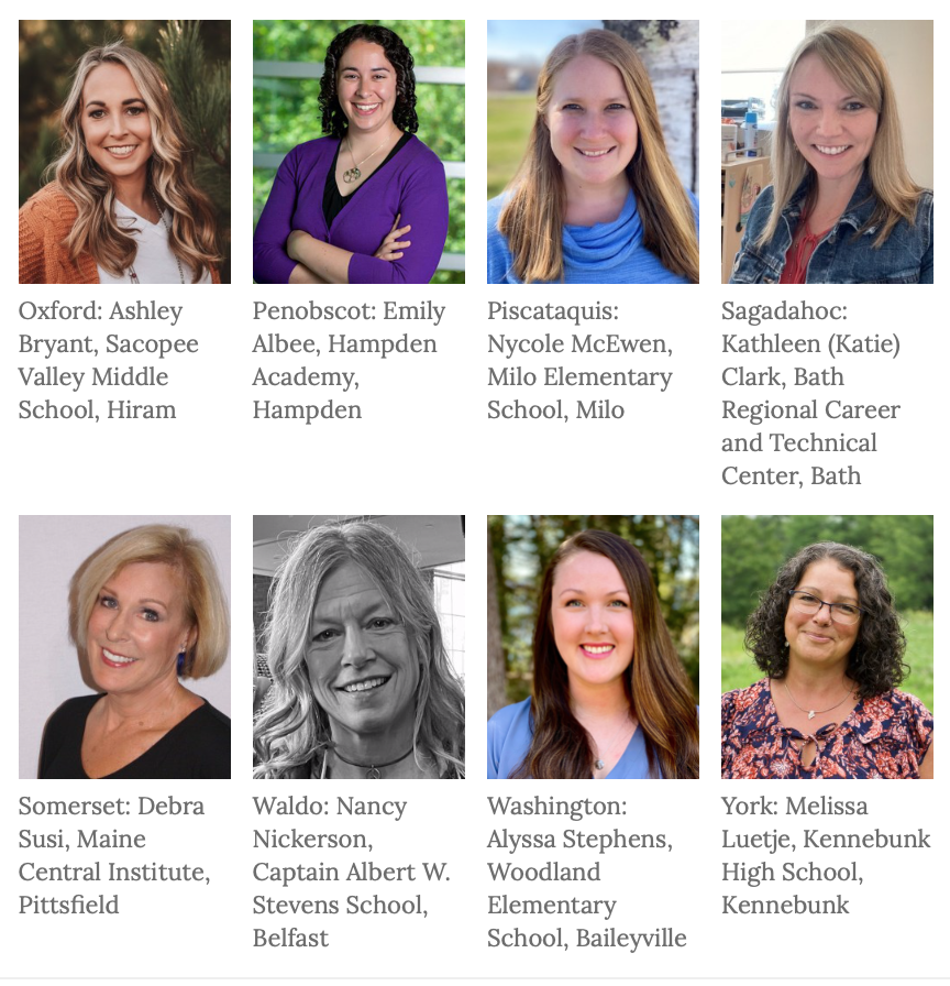 Maine County Teachers of the Year serve as ambassadors for teachers, students, and quality education state-wide throughout the year. The Maine County Teachers of the Year are available to make presentations to local and regional organizations. Throughout the summer, they will continue to participate in an intensive selection process. In the fall one of these sixteen teachers will be named the 2023 Maine State Teacher of the Year.
