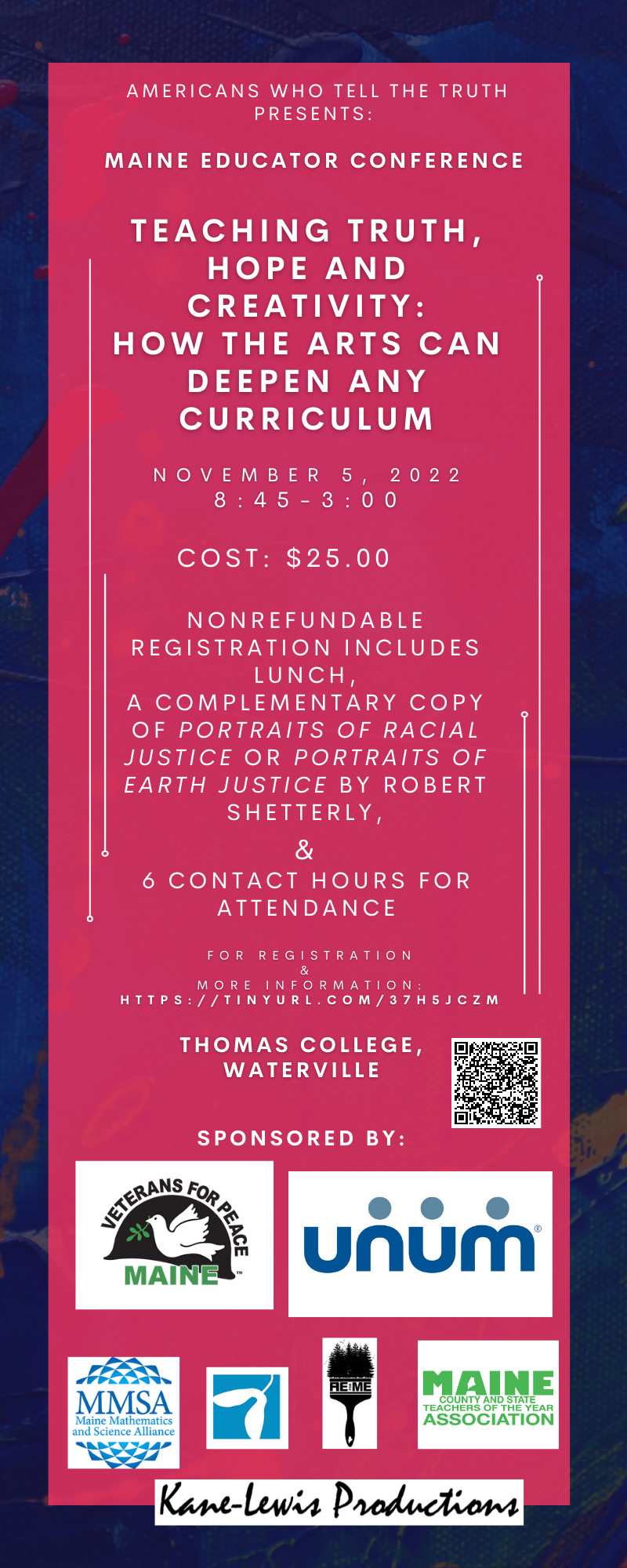 In addition, you will have access to the film Truth Tellers (no cost) for 24 hours. If you’ve never seen the film or wish to see it again, this is a chance. Meet Maine artist Rob Shetterly who has created over 250 portraits. He will be unveiling his latest painting at the conference and the subject will be on a panel. The film has been created by Maine Film Maker, Kane Lewis Productions. Richard Kane will also be at the conference.