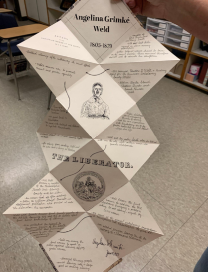 We have supported a range of projects this year with our support with instruction in classes. Following is a sample of some of the projects implemented this year that replace traditional paper and pencil assessment. A biology teacher created nature journals with compartments for collecting samples. A foreign language teacher had year four students create illustrated children’s literature books and then hosted a student lead reading to other foreign language levels. Social studies teachers have created a variety of projects as they have learned about the founding of our country, abolitionists, immigration, and world cultures. English teachers are currently having students create illustrated poetry selections for National Poetry Month, a showcase for learning from a variety of texts read this school year, and another focused on the exploration of fairy tales. Our library is physically in the center of our school with an English/social studies wing on one side and a science/math wing on the other. Historically students have rarely shared about their assessments for learning from one side of the building to another. Book art, however, has changed the culture. It has been a connecting force with students talking with each other across classes and disciplines. Through these projects, we have had a focus on developing templates as rough drafts and this repeated experience has fostered a habit of mind focused on quality, planning, and revision that we see transferring to research, the writing process, and scientific inquiry. This has been an unexpected benefit of the grant. Students have been more present in their learning and deepened their own personal expectations for quality. One student stated, “Thank you so much for letting me make a book to show what I know. I don’t test well, and I’ve never felt the teacher knows what I know.”