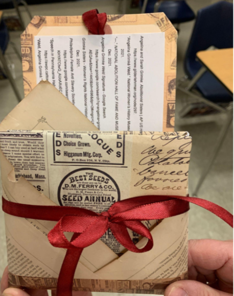 “Participants discussed ways they might use the book art samples in their classes in the varying content areas in the upcoming year. Participants were informed of the grant and the opportunities for supplies to be checked out from the library, prep of supplies by students doing community service, and support from us. In November (2021) and in March (2022), 21 staff members across all content areas participated in learning book art creation techniques.”