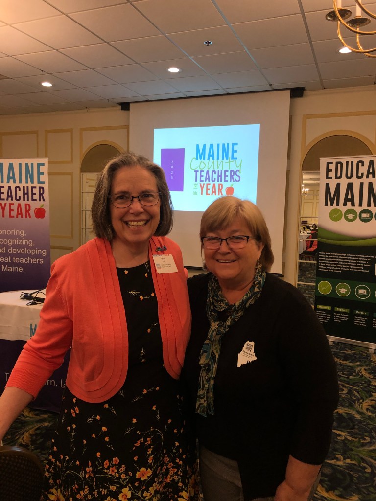 I had the pleasure of attending the introduction supper and Hall of Flags ceremony announcing the 2023 Maine County Teachers of the Year. It was a chance for me to listen and learn and to congratulate many colleagues who were selected this year to representative teachers in their county. All of them are amazing and have so much to offer their communities. There are several this year who have minors in one of the arts or teach a creative class as part of their teaching assignments.