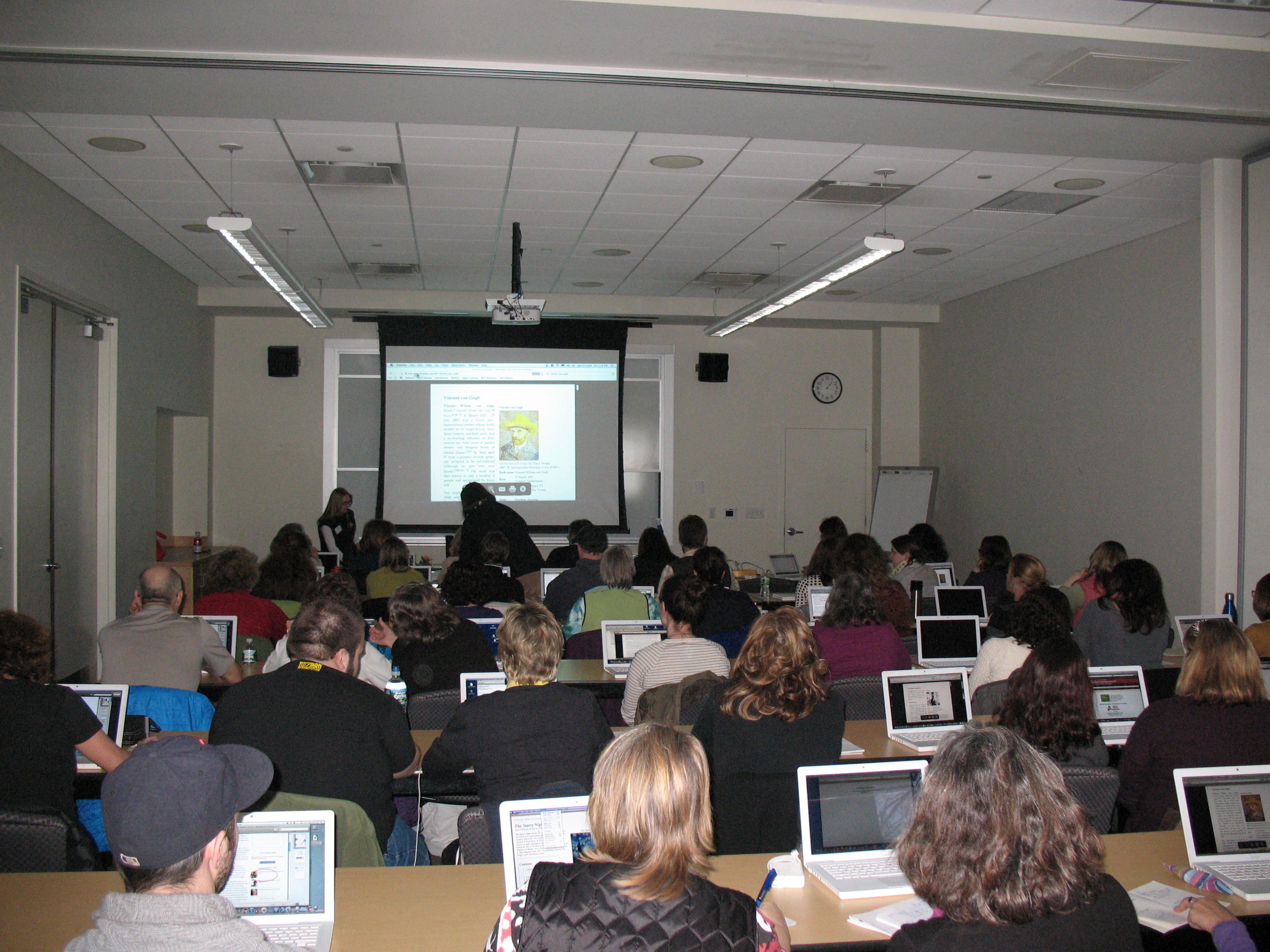 Participants discussing information at the summer institute, June, MECA