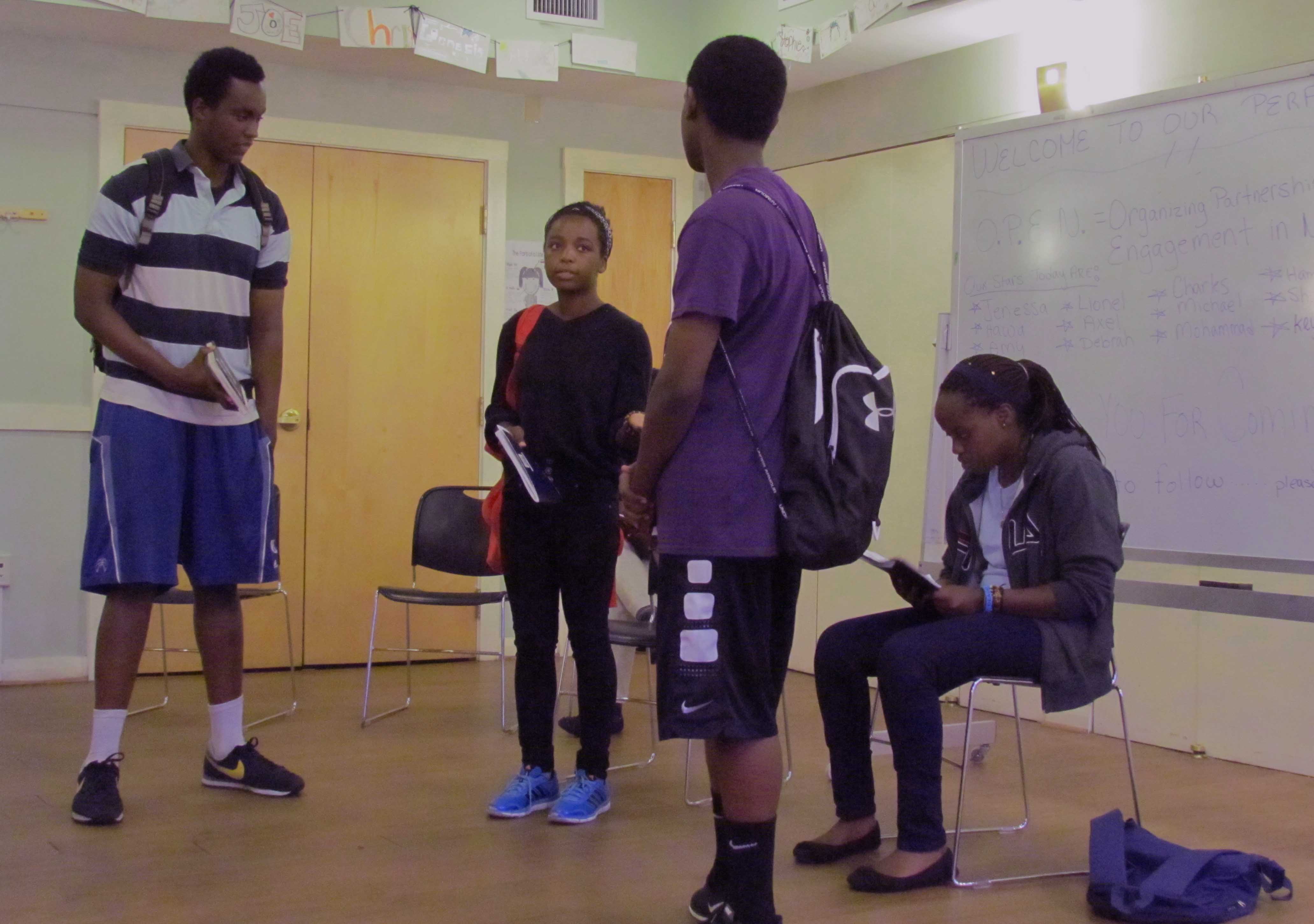 The introduction of the BCTA program into Portland has been through MAAE’s new partnership with OPEN (Organization for Partnership and Engagement with Neighborhoods), an after-school and weekend program in Portland’s Parkside area that engages diverse youth to take an active role in the decision making and dialogue about issues of social justice affecting their community. During a three-week residency in July with BCTA theater artist Jeri Pitcher, an OPEN group of 12 mostly minority and immigrant youth created “Amy’s First Day,” an original drama, which they performed for the community on the evening of July 22.