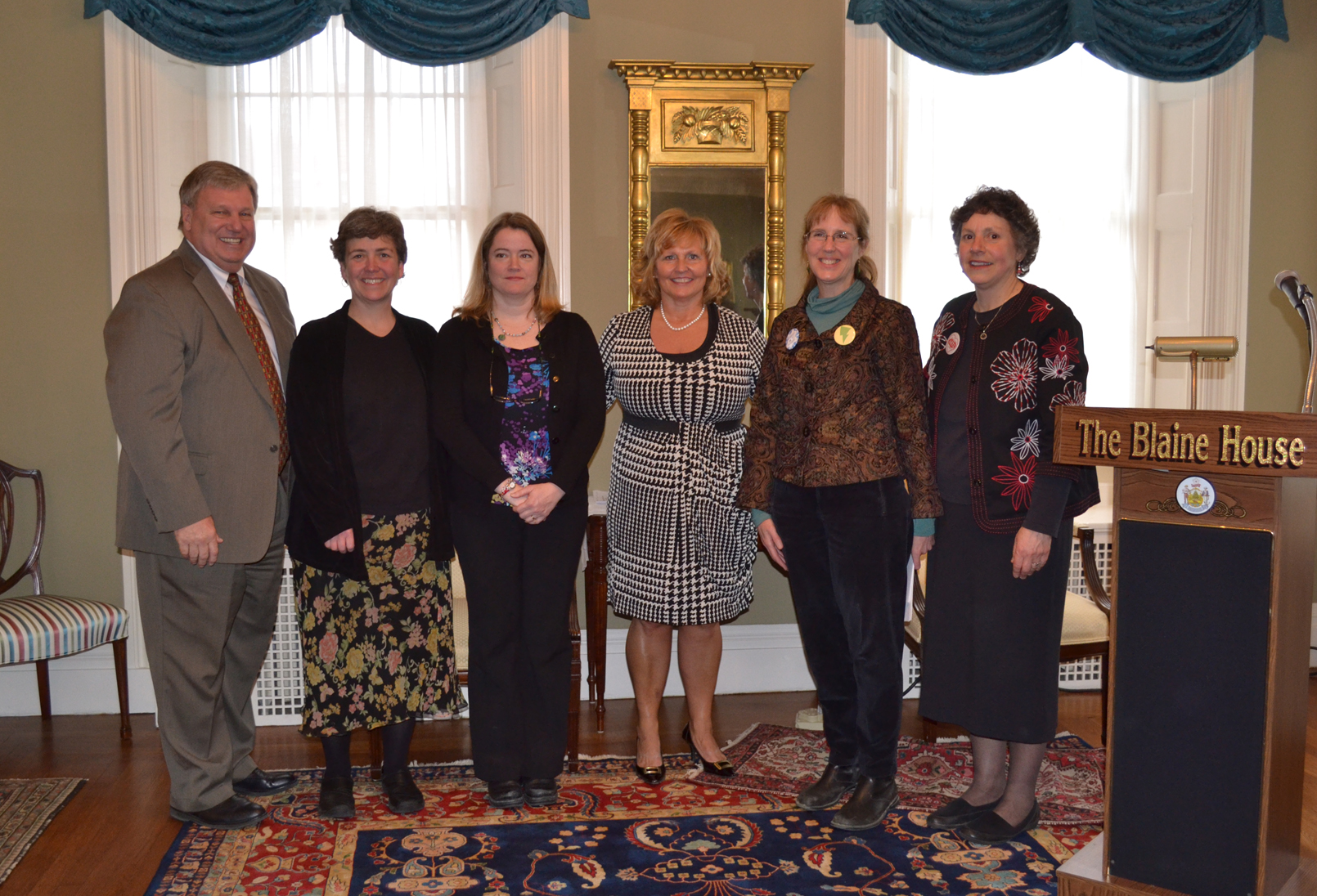 Dr. Steven M. Pound, State Board Chair, Carolyn Brown and Suzanne Southworth, Camden Hills Regional High School, First Lady Ann LePage, Kimberly Murphy, Camden Hills Regional High School music teacher, Argy Nestor
