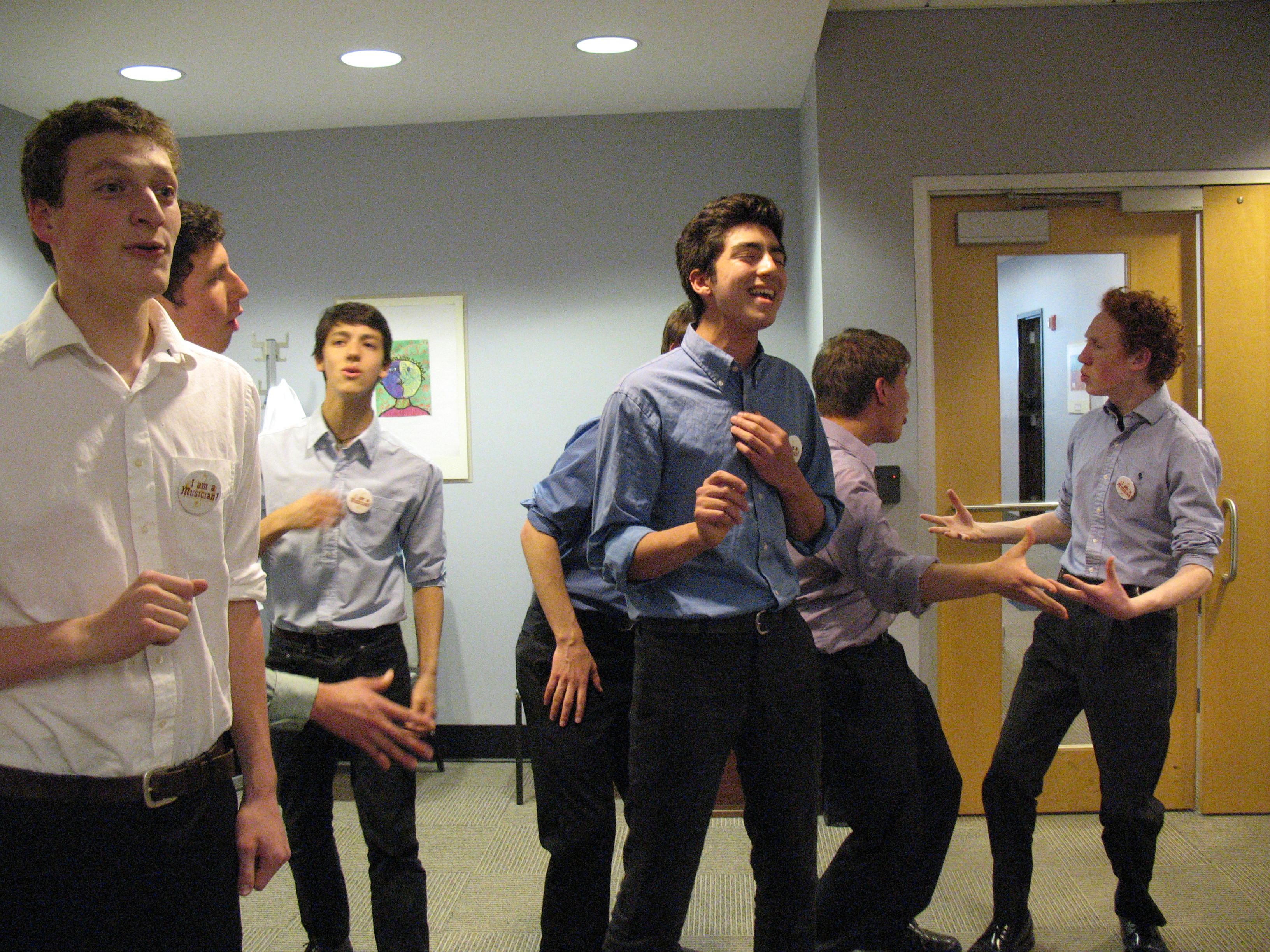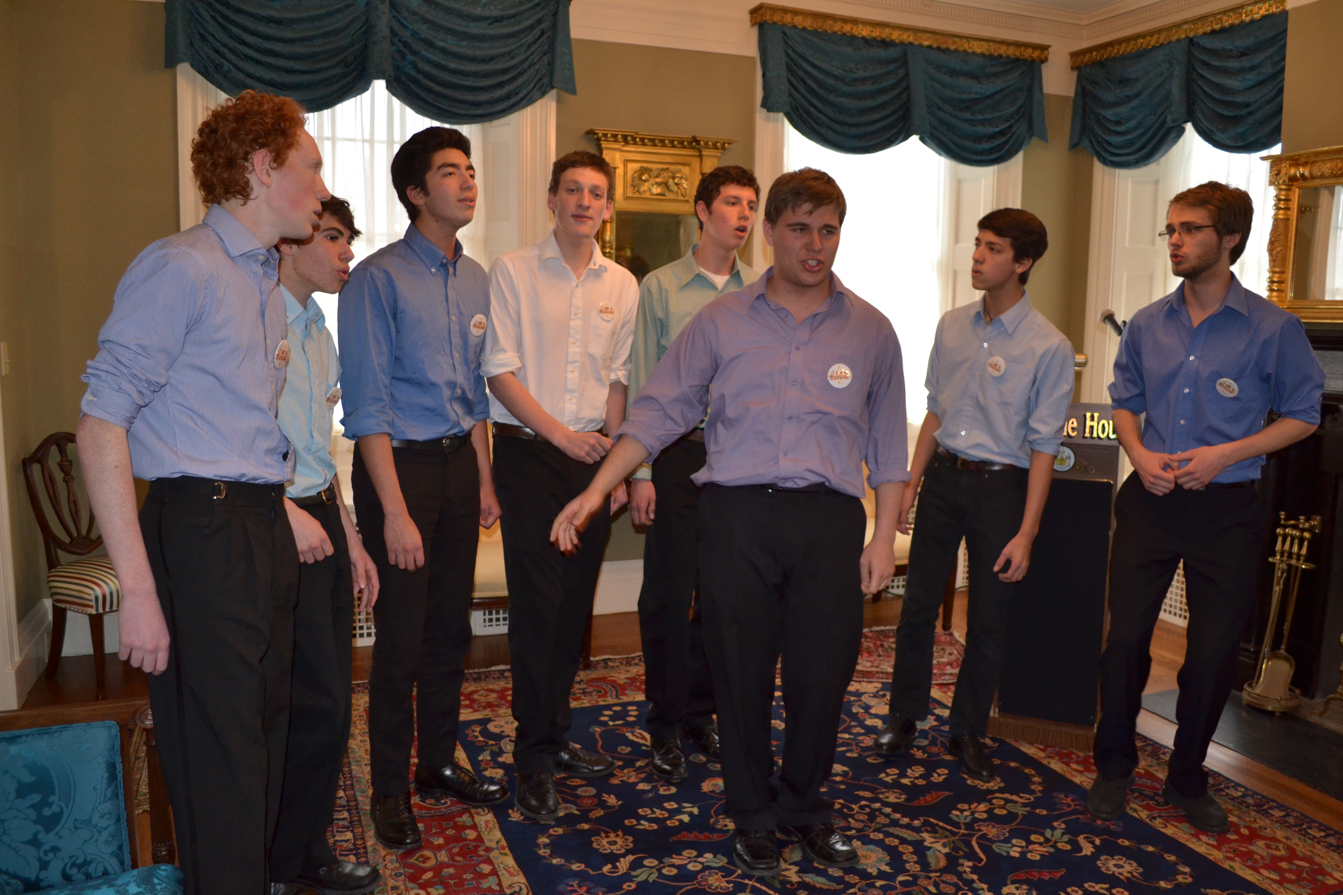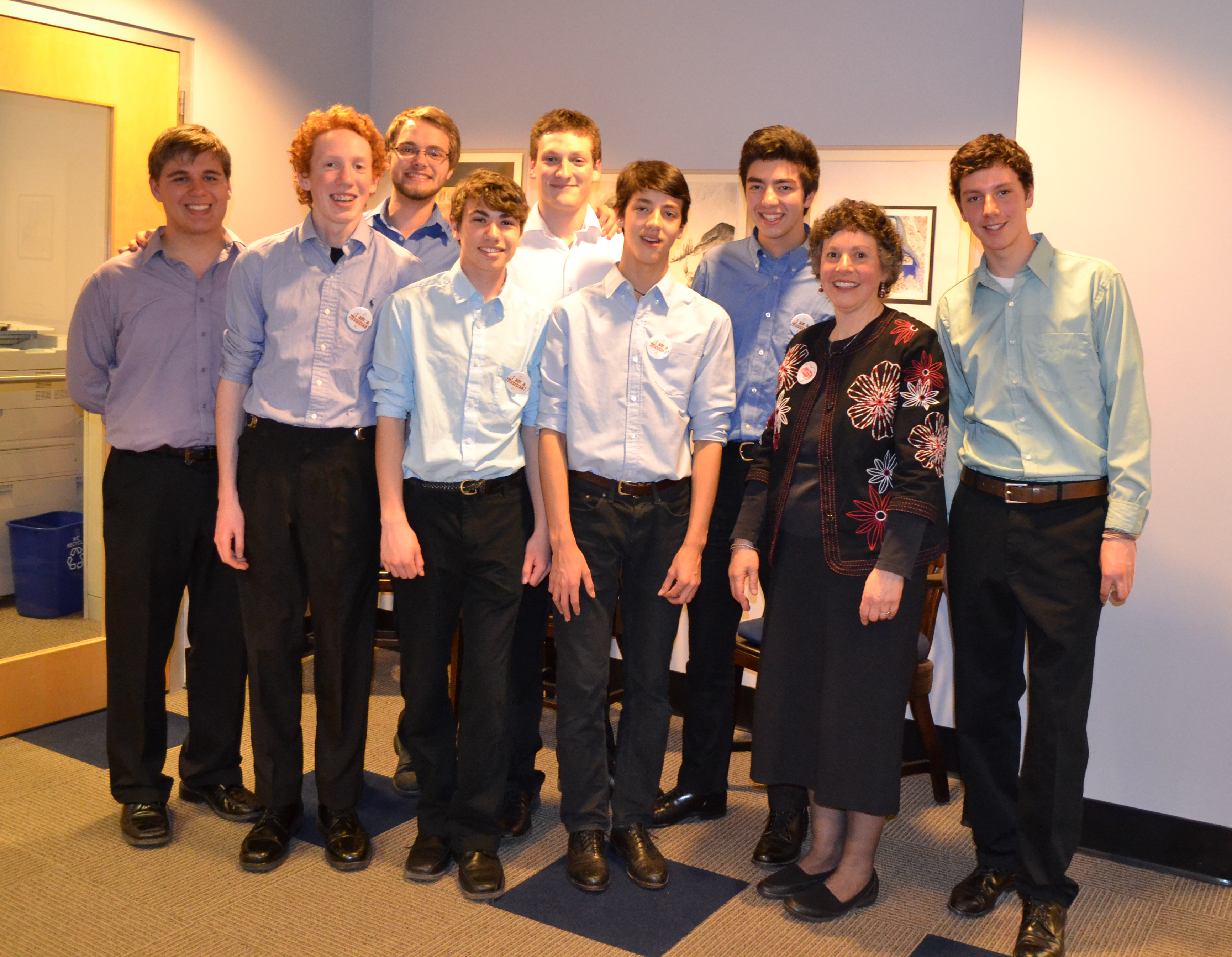 Music students in the 8-member, student lead a cappella group The Off-Beats(!) performed the Stars Spangled Banner and Sweet Caroline at the reception held at the Blaine House. After recognition and refreshments families were invited to the Department of Education to view the art exhibit. The Off-Beats(!) stopped at the State House to see Senator Mazurek and sang in other spots in the State House and the Cross Office building. It was a special treat to have them sing in the lobby at the Department with about 20 Department employees watching and listening. The Off-Beats(!) make people smile and a reminder of why it is essential to provide quality arts education for all students!