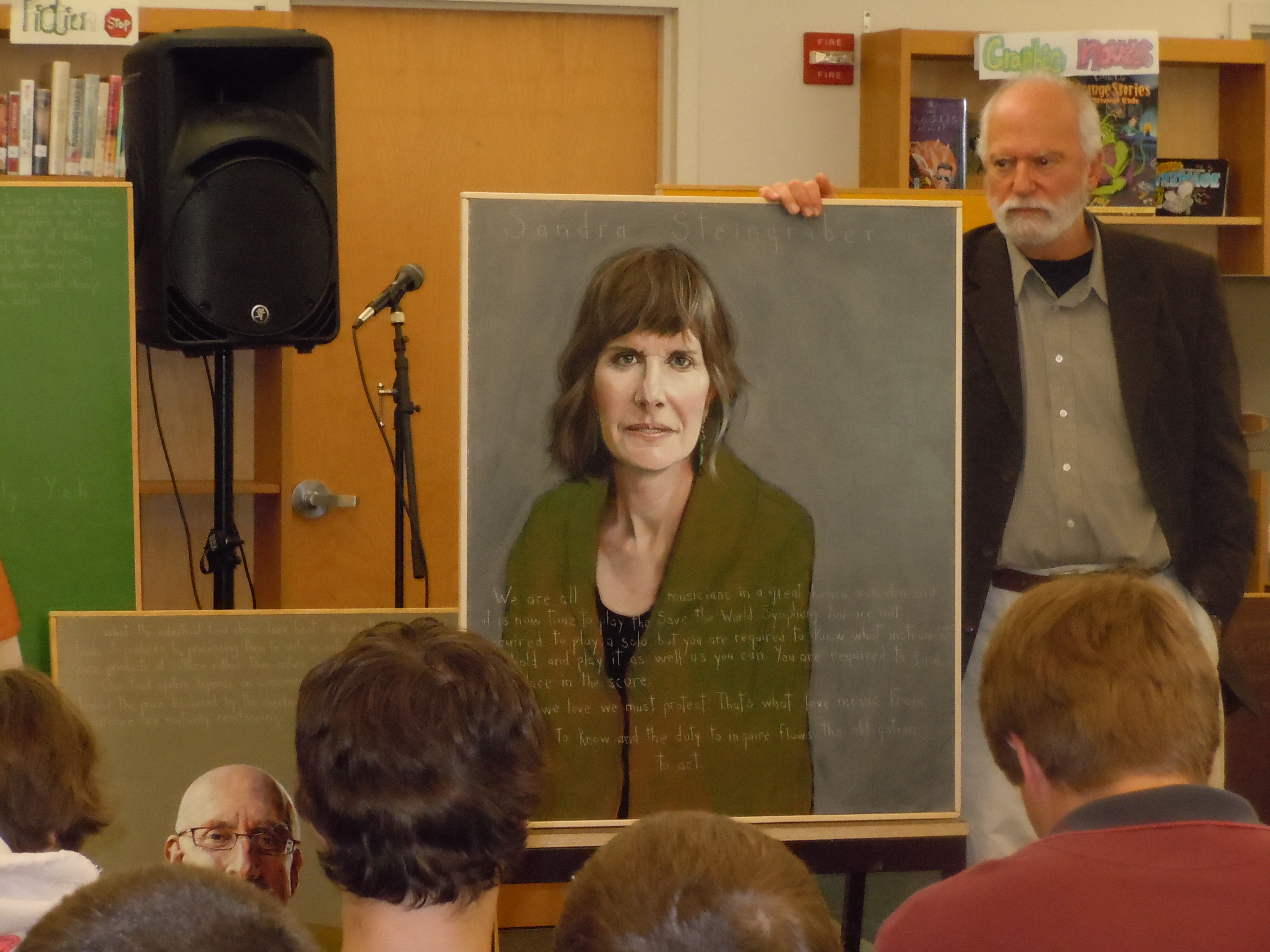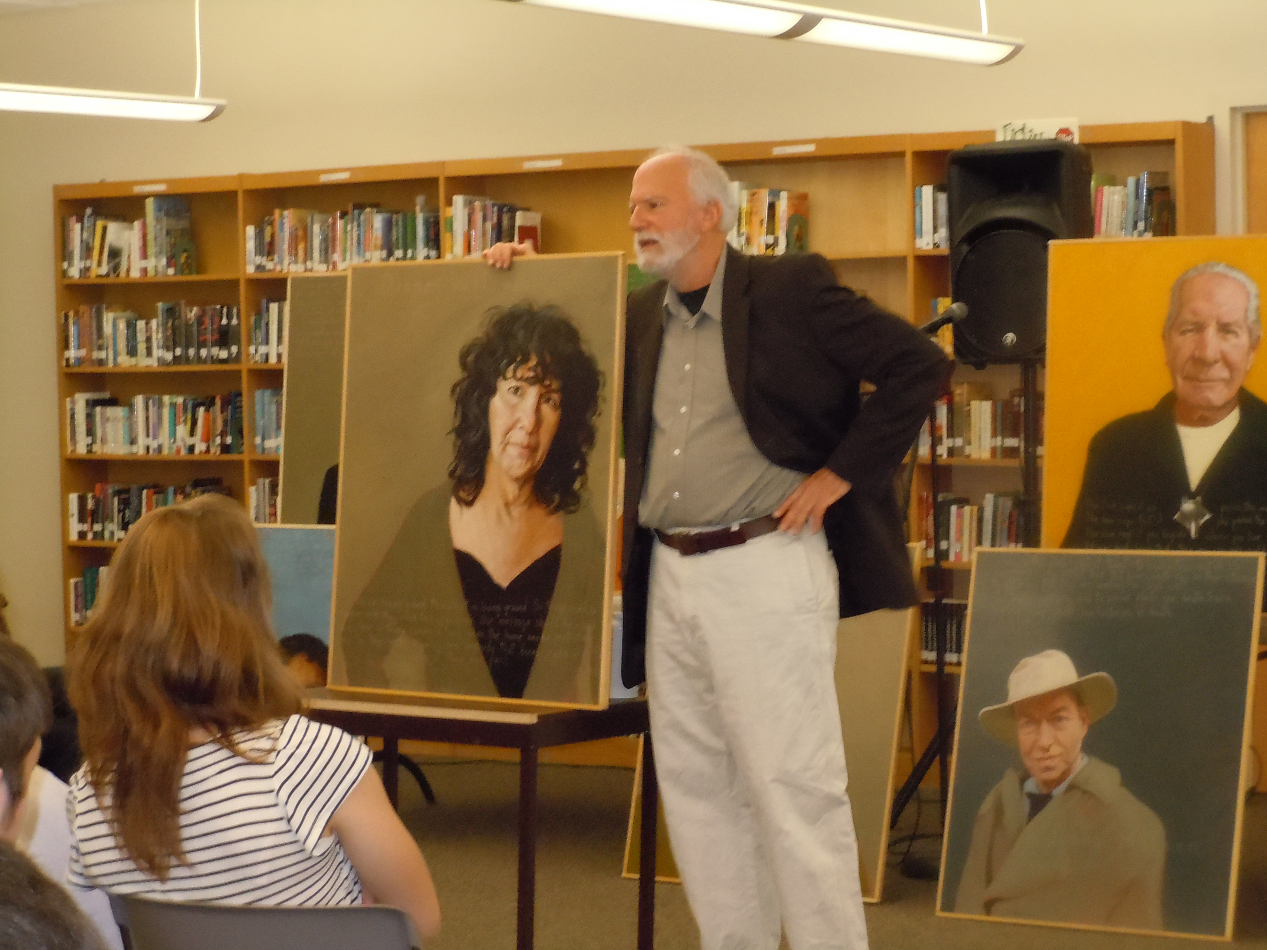 Robert Shetterly addressed Brewer High school Art, English, Journalism classes and others on the role of social activism and art. He discussed his own reasons for starting the “Americans Who Tell the Truth” project as well as engaged students in discussions about important social movements in the past and current issues that affect them today. His presentation challenged the attention media gives to celebrities and encouraged students to speak their own truths about social issues and how much it can make a difference in changing perspectives and sometimes even the course of our history. Honors art classes are taking the challenge themselves and discovering people who have made a difference in the issues that are are personally important to them and doing their own portraits based on the research they have done.