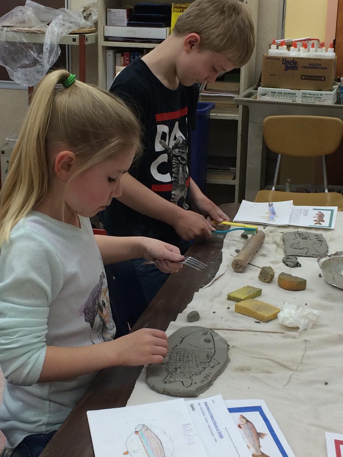 The second component, was to help foster connections with other subject areas and connect students with the local ecosystems and history of the community. Classroom teachers have been very helpful introducing the topics through multiple lenses. Students have had to research their subjects, and then use that research to educate their image development. Members from the Union Historical Society came in and presented to students in grades 4-6, giving them first-hand information about some of the past events that helped shape the town into what it is today. As students images developed through sketching and then sculpting, their understanding of the subject grew. They also learned much more about working with clay as a medium, and some of the logistics of putting together an installation like this.
