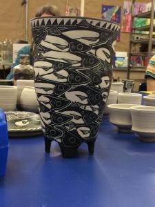 - I learned about creating sgraffito that tells a story on pottery. I would love to learn more about throwing with Tim Christensen.