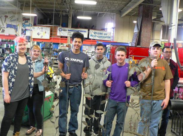 This is a very large collaborative project underway with the Wentworth School in Scarborough and the welding students at Portland Arts and Technology High School (PATHS). There are 32 students from 12 sending schools taking part from PATHS. This is a great example of STEAM (Science, Technology, Engineering, Arts, and Math). The students are creating a fence for the existing school garden that will become a gallery for outdoor art and science projects. Art teacher Joanne Maloney is involved along with the teachers who teach the STEM subjects. Some of the work will focus on kinesthetic, or tactile learning, and movement.