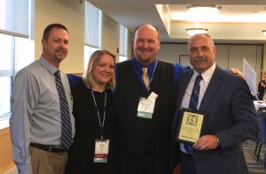 Oxford Hills staff Kyle Jordan, Sarah Bailey (former), and Dennis Boyd presenting Ted Moccia, Oxford Hills Regional High School principal the Outstanding School Administrator Award