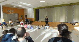 I saw so many little moments of change in the students. From week to week, confidence blossomed around both physical skills and creative expression. For those 45 minutes, children with little or no English were able to participate on a level equal to their peers, as everyone worked to communicate through movement, watching, mirroring, and generating physical responses to the movement messages around the room. I honestly couldn’t always predict which children could not understand a lot of English–until the classroom teachers told me.