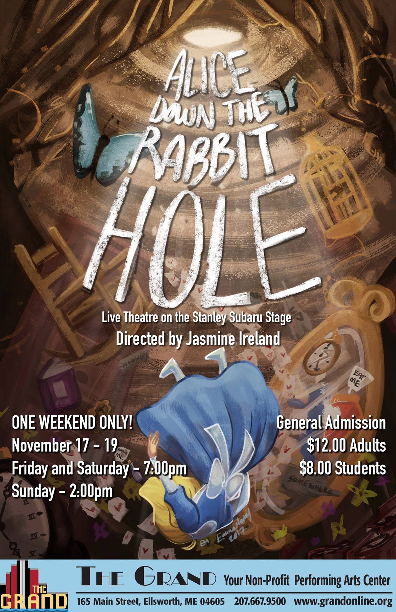 November 17-19, Friday and Saturday, 7:00 p.m., Sunday, 2:00 p.m. Being performed at The Grand Performing Arts Center, Ellsworth. Directed by Jasmine Ireland.