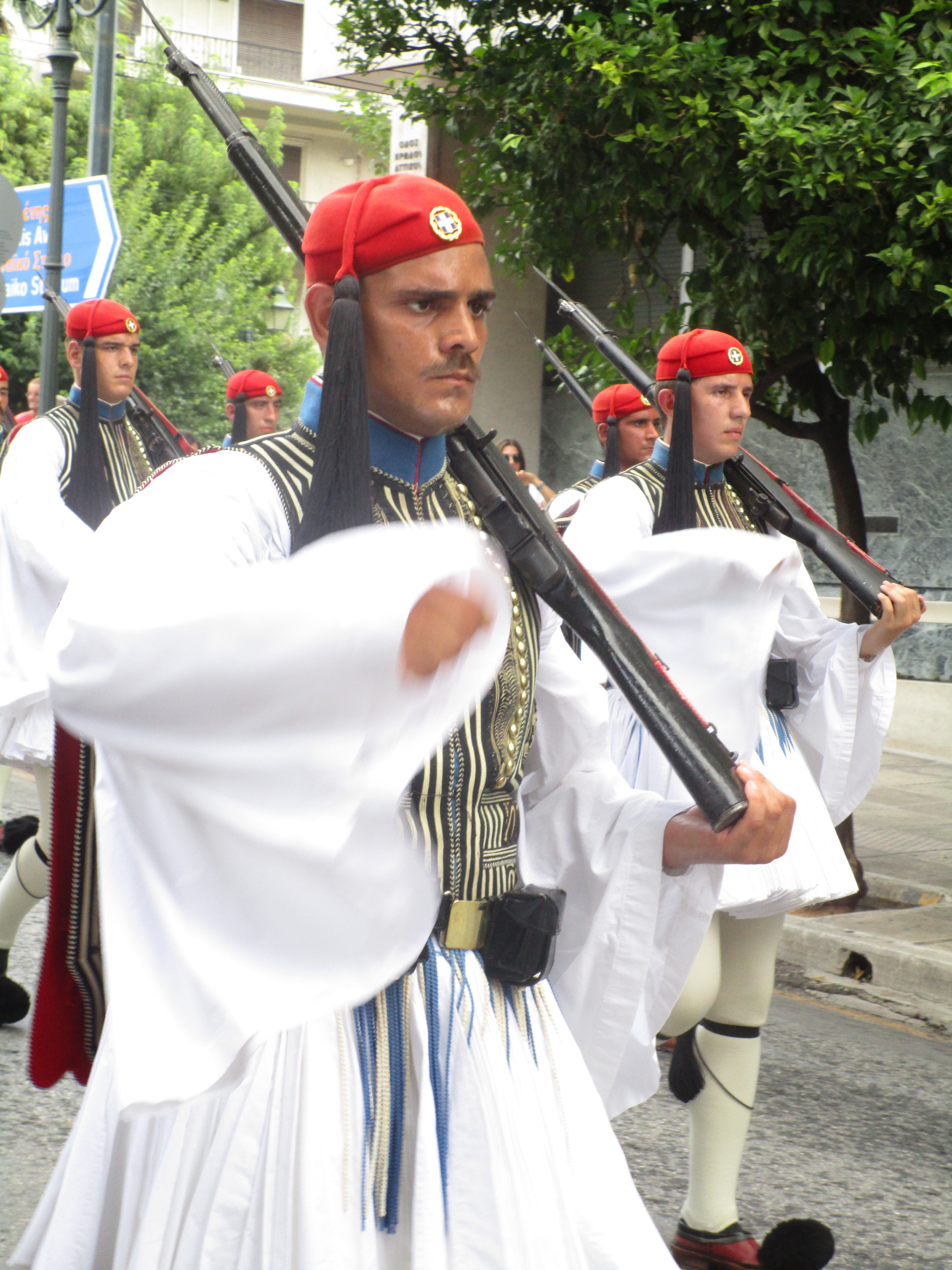 A highlight of the trip was seeing the evzones at the changing of the guard at the tomb of the unknown soldier. Their precisions is a joy to watch. We saw them at the beginning of the trip and then met my cousins son who is a member of this group of soldiers. On our last day in Athens we watched him in the parade and had the chance to visit in the barracks area. I was so proud!