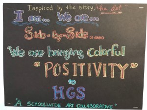 I’m guessing that some or many of you and your students celebrated Dot Day in some way. Janie celebrated in a big way that impacted the entire school community. Student learning connected to analogous colors and also to kindness and being positive. Every student and staff member painted a dot, about 270 of them. Afterwards they were displayed in the school’s lobby for all to see and appreciate.