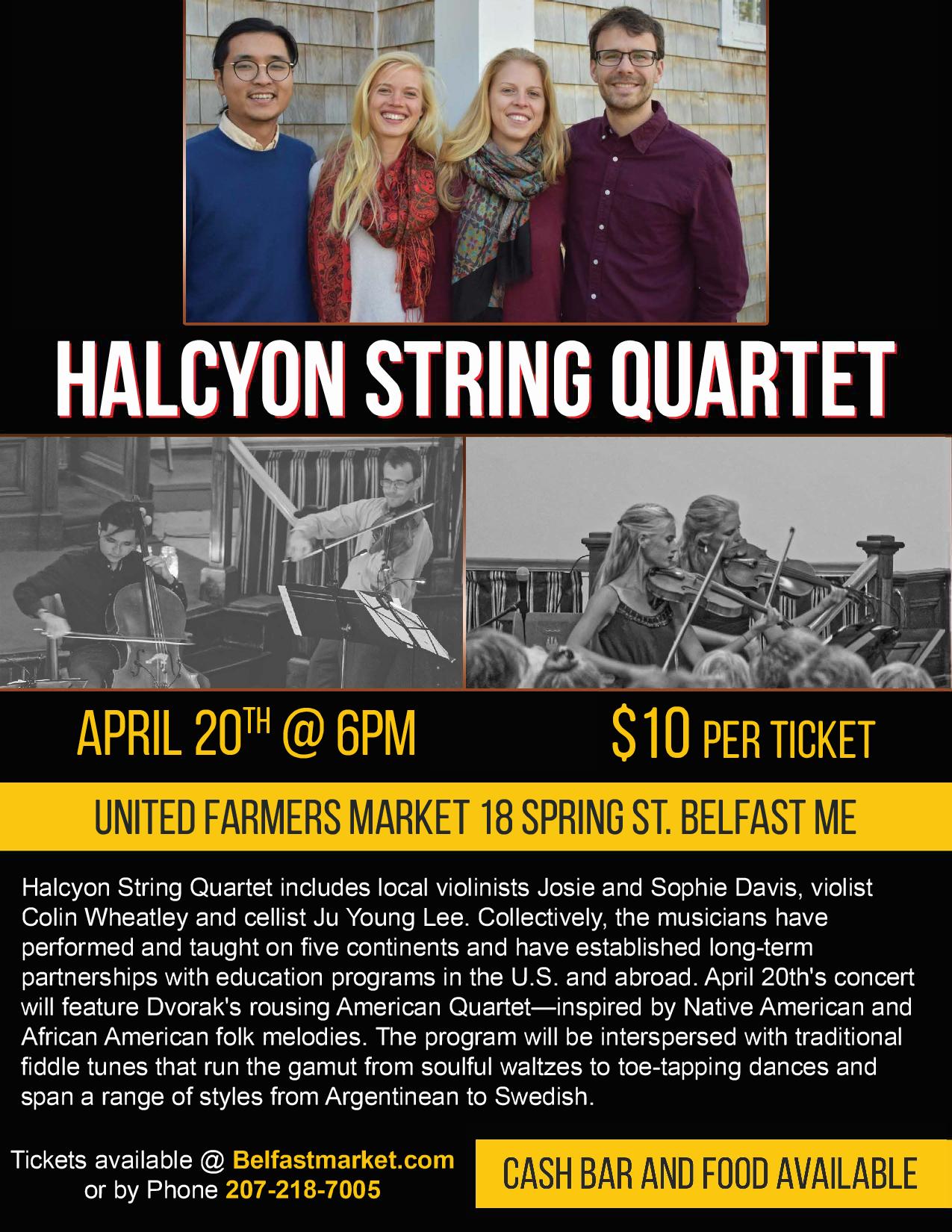 Sophie and Josie Davis and friends Colin Wheatley and JY Lee will be performing April 20, 6:00 p.m., Belfast United Farmer’s Market. Tickets $10. It promises to be a fun evening with food, drinks, and lots of music. They’ll be playing Dvorak’s “American,” Quartet and a slew of folk tunes from around the world. You can find tickets and more information HERE!