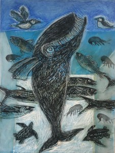 The keynote was provided by Krisanne Baker, Medomak Valley High School art and ecology teacher and artist. She is committed to advocating for the ocean and inspires her students to learn about water quality, availability and rights, and ocean stewardship. Guest speaker Daniel Salomon who teaches in The Hatchery at Camden Hills Regional High School provided background information on the work he is doing with students utilizing and reusing materials and the role we each can play.
