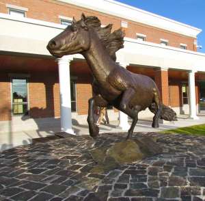 The power of the arts lives strong here in this community. What is even more remarkable is that Forest Hart did not charge the school the money that it cost to create the large bronze bronco. It is a gift from the Hart’s. The idea is that by selling the smaller table top broncos the cost of the full-sized monument will be covered. “What if you don’t sell enough to pay for the job?” he was asked. “That thought never entered my mind,” Hart remembers saying. “But I told them, ‘that’s my responsibility, not yours.’”
