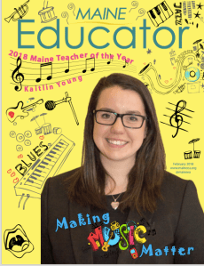 Kaitlin Young is the 2018 Maine Teacher of the Year and Music Educator from Sedomocha School in Dover-Foxcroft. The room will be filled with Maine’s arts community members including educators. Very exciting opportunity for her to represent arts education among arts supporters.