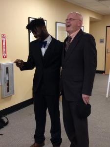 Victor and his English teacher Mr. Siragusa at the State House last month after reciting for the Education and Cultural Affairs Committee