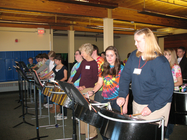 Julie also presented a session with the Pantastics, the school’s steel drum band. The band performs at community events and has traveled to other schools and events in and out of Maine. The students played several pieces at the start of the conference as well as in an individual workshop. Other middle school teachers were invited to play one of the drums as well. The members of the band promised to write a blog post on their involvement playing the steel drums. Look for that in the future.