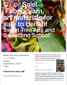 • I will be serving as the director of the middle school at Sweetland School, an arts integrated school in Hope. Lindsay Pinchbeck started the Reggio Emilia inspired school five years ago at the Sweet Tree Arts Center. I have served as an advisor to the school and am excited about the possibilities for the students entering middle school. I will support the teaching team and do some arts integrated teaching as well.