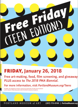 If you’re a teenager, you’re invited to the Portland Museum of Arts (PMA) for a special event: 3rd Annual Teen Night at the Portland Museum of Art. The PMAs seven Homer High School Fellows have designed You Are the Masterpiece, a teen-centered night, complete with art-inspired photo booths, teen-oriented tours, pin-making, free food, music, and a raffle. The event is FREE and is this Saturday, August 18th from 7:00 pm to 9:00 pm. The PMA will only be open for teens at this time.