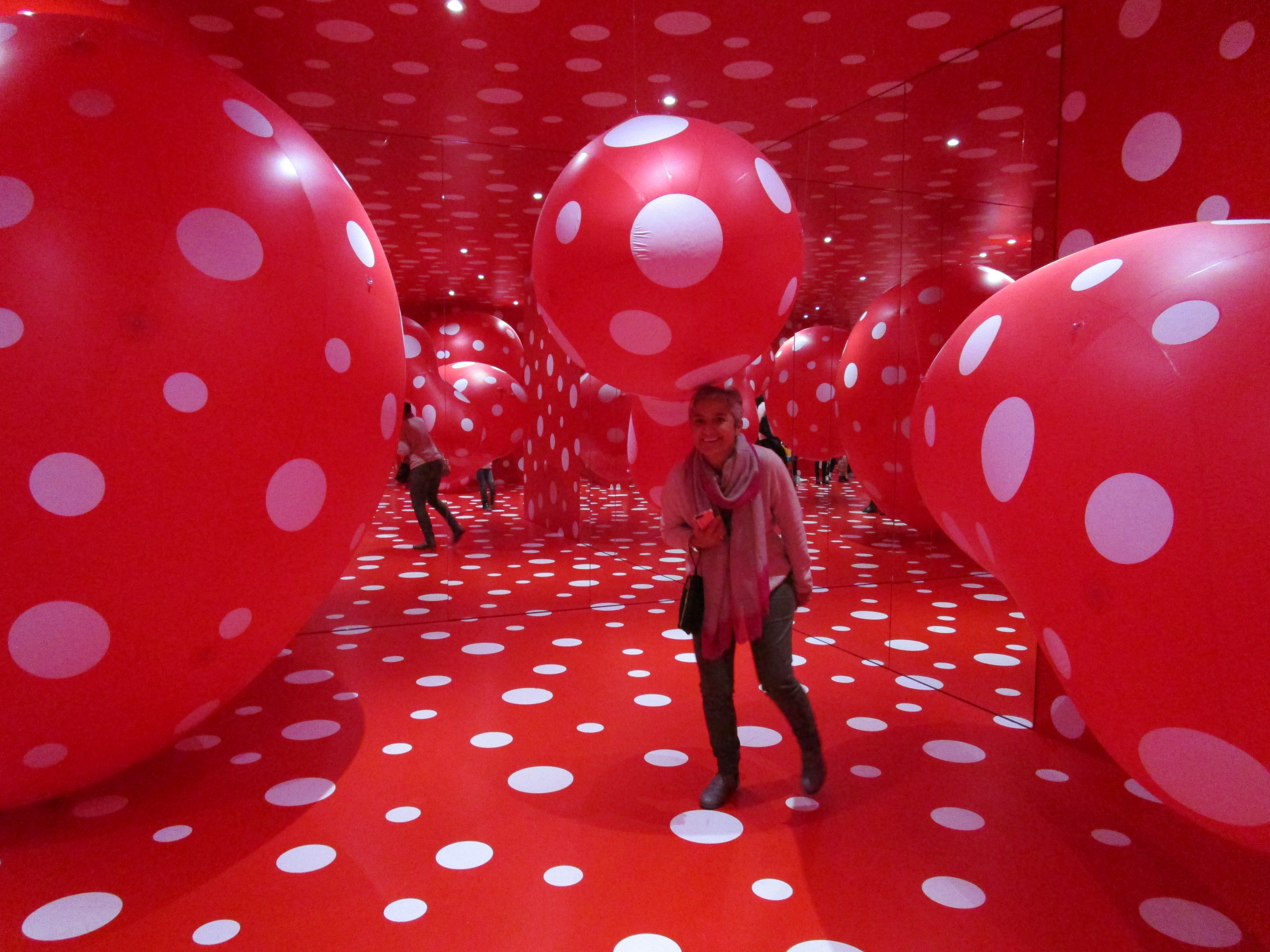 My visit with Vivian was filled with a visit to the Louisiana Museum of Modern Art. It is like no other I’ve seen. The museum was abuzz with people of all ages. People were very engaged. Each of the areas and gallery’s flow into each other seamlessly and makes for a delightful visit. The studio space for education is alive with color and motion. It opened in 1958 and was intended to house only Danish art but has turned into an international museum with a variety of modern pieces. It is built on the water and includes an outdoor sculpture park which is part of their permanent exhibit that meshes beautifully with the environment. One of the highlights of my visit was definitely the Ayoi Kusama exhibit. Born in 1929 Kusama is a ball of energy and the comprehensive show can sense her commitment and vitality. The pictures of hers throughout provide a sense of who Kusama really is. Please do go to the site and take a look at her varying work.