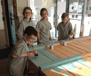 From there I headed north to visit Maine Arts Leadership Initiative (MALI) Art Teacher Leader and Leadership Team member Theresa Cerceo. First stop, after my hour drive was at the Dr. Levesque Elementary School in Frenchville where Theresa was teaching a science lab. Yes, art integration in action. It wasn’t about the product but about learning by asking questions and experimenting with materials. For example, students were grinding leaves with a little bit of water. Students test scores in math and reading have increased due to the work that ALL teachers are doing during the weekly labs.
